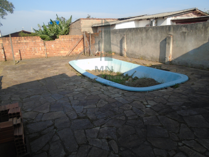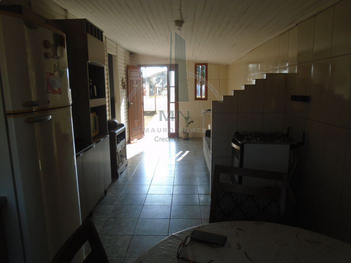 Linda casa mista sendo 48,00m2 de madeira de lei e 29,60m2 em alvenaria. Possuindo 02 amplos dormitórios, banheiro em alvenaria, sala e ampla cozinha. Garagem coberta, em alvenaria, com churrasqueira. A 420,00m da avenida principal. Escriturada. Nos fundos , ampla pátio com piscina em regular estado.